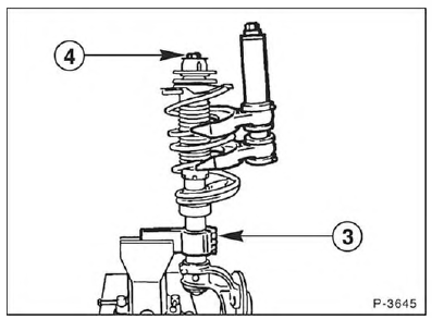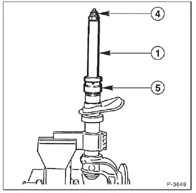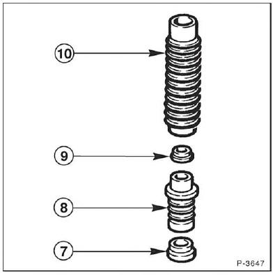 Distanzstück -7-, Begrenzungsanschlag -8-, Stützring - 9- und Schutzmanschette -10- in der in Abbildung P-3647 gezeigten Reihenfolge auf das Federbein schieben.
