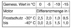 bis -30 C erreicht. Soll ein Frostschutz von -40 C erreicht werden: 1,5 I