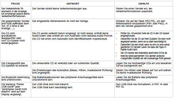 In den nachfolgenden Tabellen sind die Antworten auf die am häufi gsten gestellten Fragen zusammengestellt.