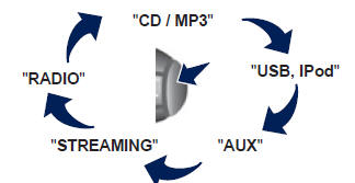 Wiederholen Sie den Vorgang so oft wie nötig, um das gewünschte Medium zu erhalten (mit Ausnahme des Radios, das über SOURCE oder RADIO verfügbar ist).