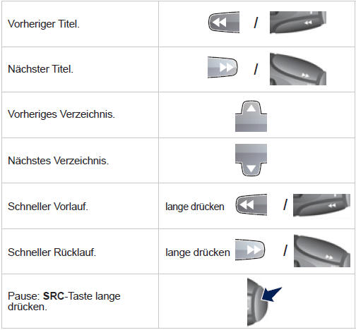 Die Steuerung des Massenspeichergeräts erfolgt über die Bedientasten des Audiosystems.