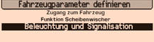 Nach Anwahl dieses Menüs können Sie folgende Fahrzeugfunktionen ein- bzw.