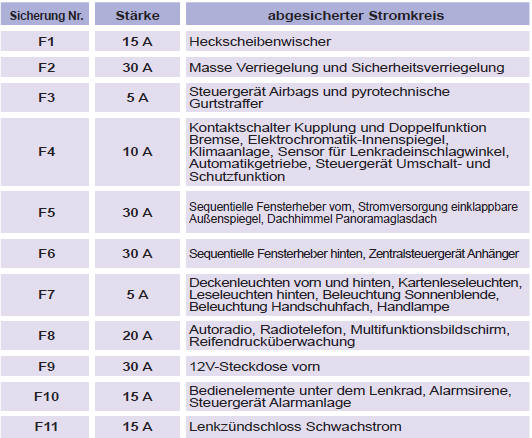 Sicherungen im MotorraumGesamt-/Tageskilometerzähler